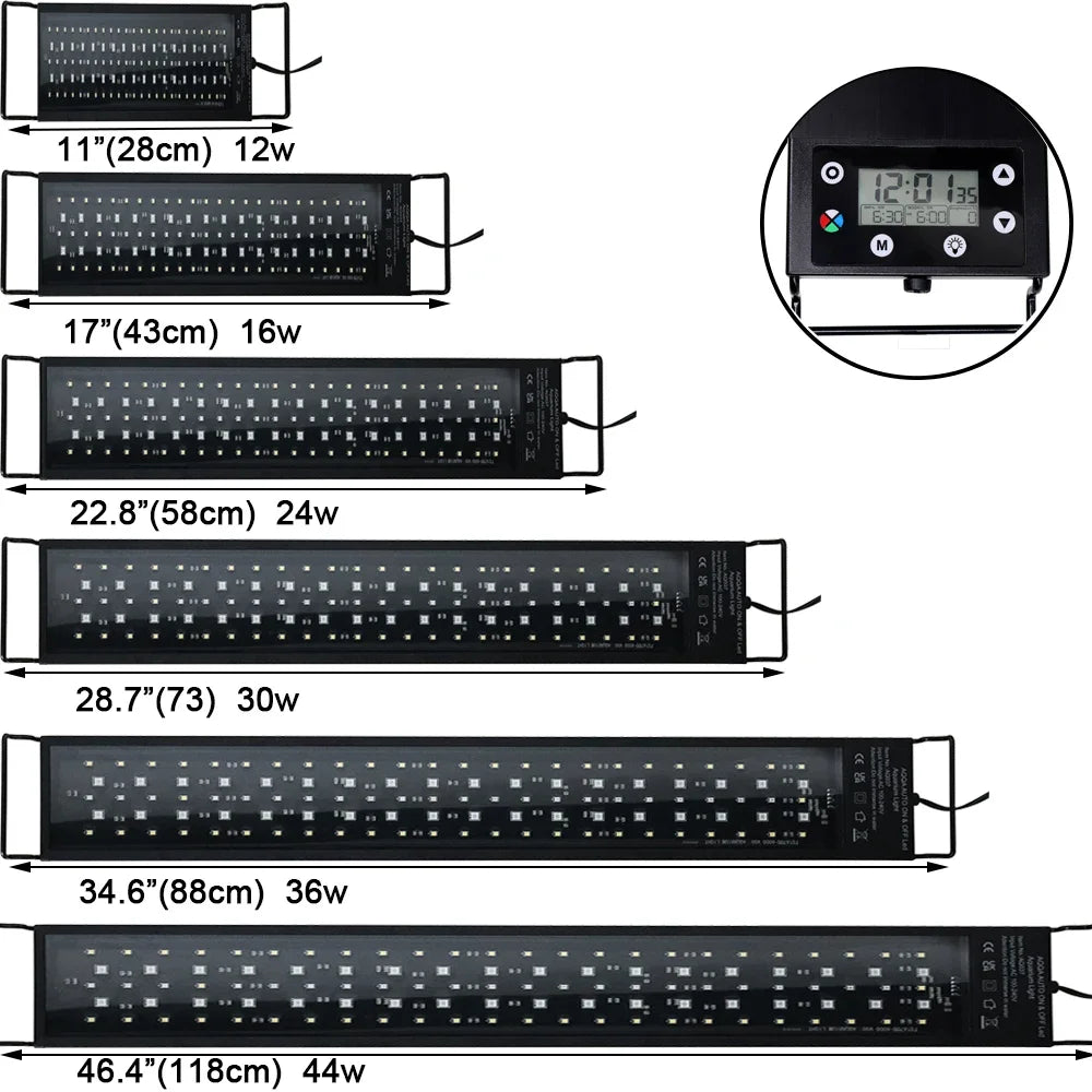 The full spectrum LED technology provides the essential wavelengths needed for healthy aquatic plant photosynthesis, promoting lush growth and vibrant colors in your planted aquarium.