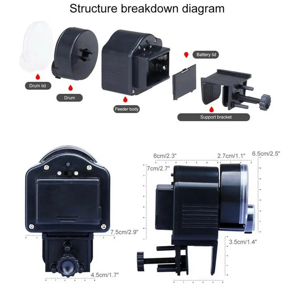 Food Hopper Capacity: 200ml (holds 2-3 weeks of food for average aquarium)