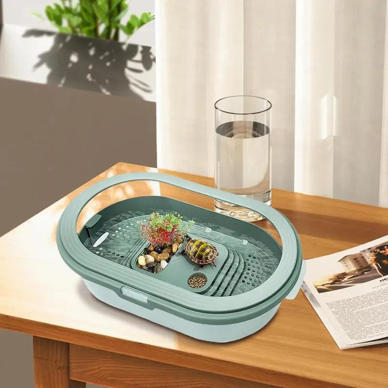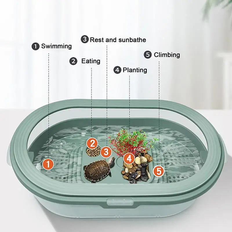 Small Turtle Tank with Anti-Escape Design - Complete Terrarium with Climbing Terrace